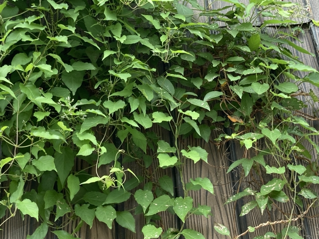 ときおり、道端の電信柱がつる植物に覆われて、まるで細長い庭木のように見えることがあります。家が丸ごとつる植物に覆われているのを見ることもあります。甲子園はナツヅタというつる植物で覆われていて、秋に紅葉するのが有名です。