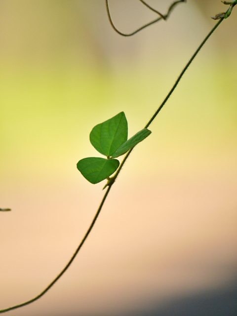 いつの間にか生長しているつる植物は、実は生き残り戦略の結果です。つる植物はつる状に何かに巻きつく性質を持ちますが、逆に言えば、自分自身の力で自立することができません。しかし、太陽光をたくさん葉に取り込まないと光合成ができなくて生長できません。そこで、全精力を細いつるを伸ばすことに傾けて、他の木に巻きつくことで地上高く葉を展開する戦略をとっているのです。