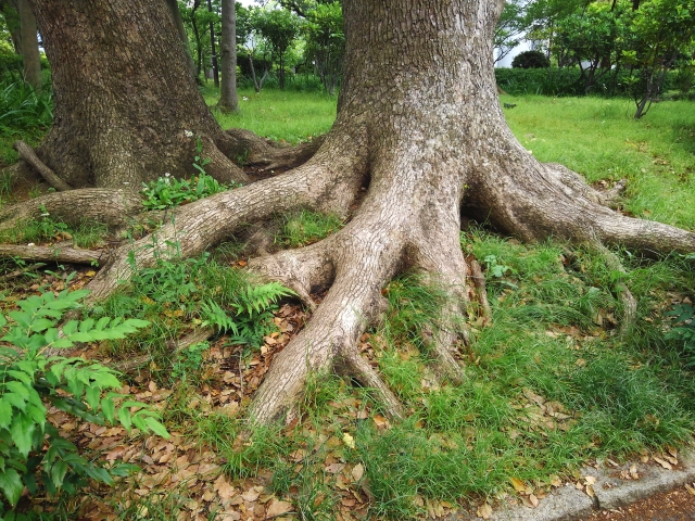 庭木についても、根が広く深く広がれば、より広い面積の土壌から水分を集めることができます。根は水を効率的に集めるための優れた装置なのです。塀の近くや水道管の近くに水分が多くあることを知っている根は、自然とそのようなところに伸長して、炎天下の真夏においても、効率よく水分を吸い上げているのです。