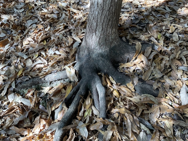 それは、時折降る雨を上手く吸い上げているからです。特に森林には長年落葉が積み重なって出来上がった腐葉土があります。そこに豊富な土壌微生物が肥沃な土壌を生成してくれています。その様な土壌は雨を溜めて湿潤な土壌状態を保ってくれます。そこに、広く深く広がった植物の根が、年中水を吸い上げているのです。