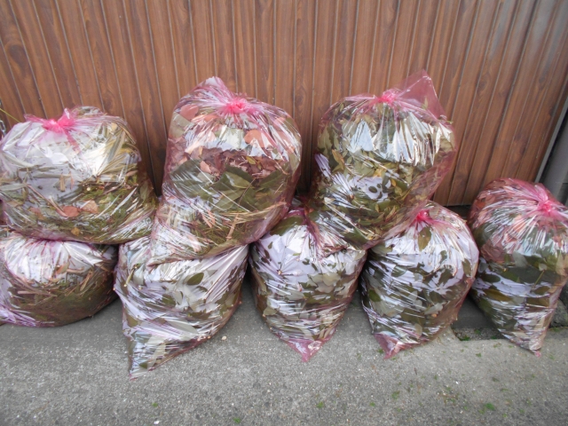 剪定作業にお邪魔した際、ある程度落ち葉の掃除もさせていただくのですが、それとは別にご自分で予め集めておかれた落ち葉を剪定にお邪魔した際に一緒に処分させていただくサービスもあります。