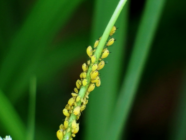 排泄物が甘い樹液であるのはカイガラムシだけではありません。有名なアブラムシも甘い排泄物を出します。よって、アブラムシが毎年発生するとスス病を引き起こします。